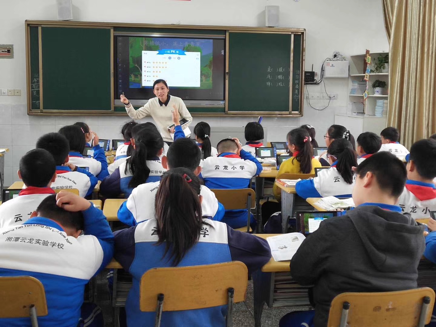湘潭县云龙小学智慧课堂信息化教育教学,大数据交互下孩子们姿态端正,积极思考,认真作答,使课堂更活跃,效率更加高。信息化教育教学,智慧课堂,智学网,智慧校园的承接者——湖南协成电子技术有限公司。